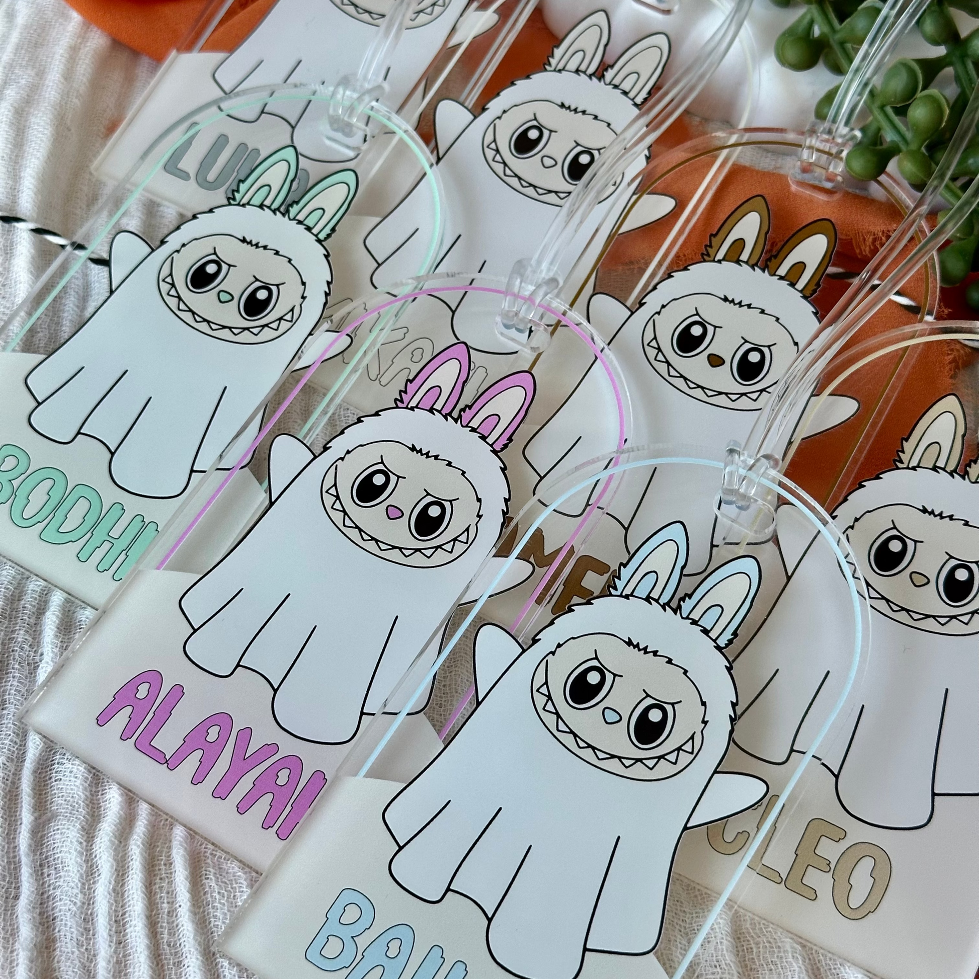 Add a touch of Halloween magic with our Ghost Labubu Bag Tags.